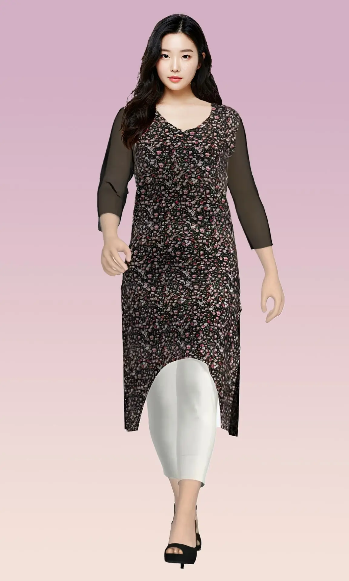 It is a long, tunic-style top, generally knee-length or slightly longer, that can be paired with various bottom wear like leggings, churidars, salwars, or even jeans.